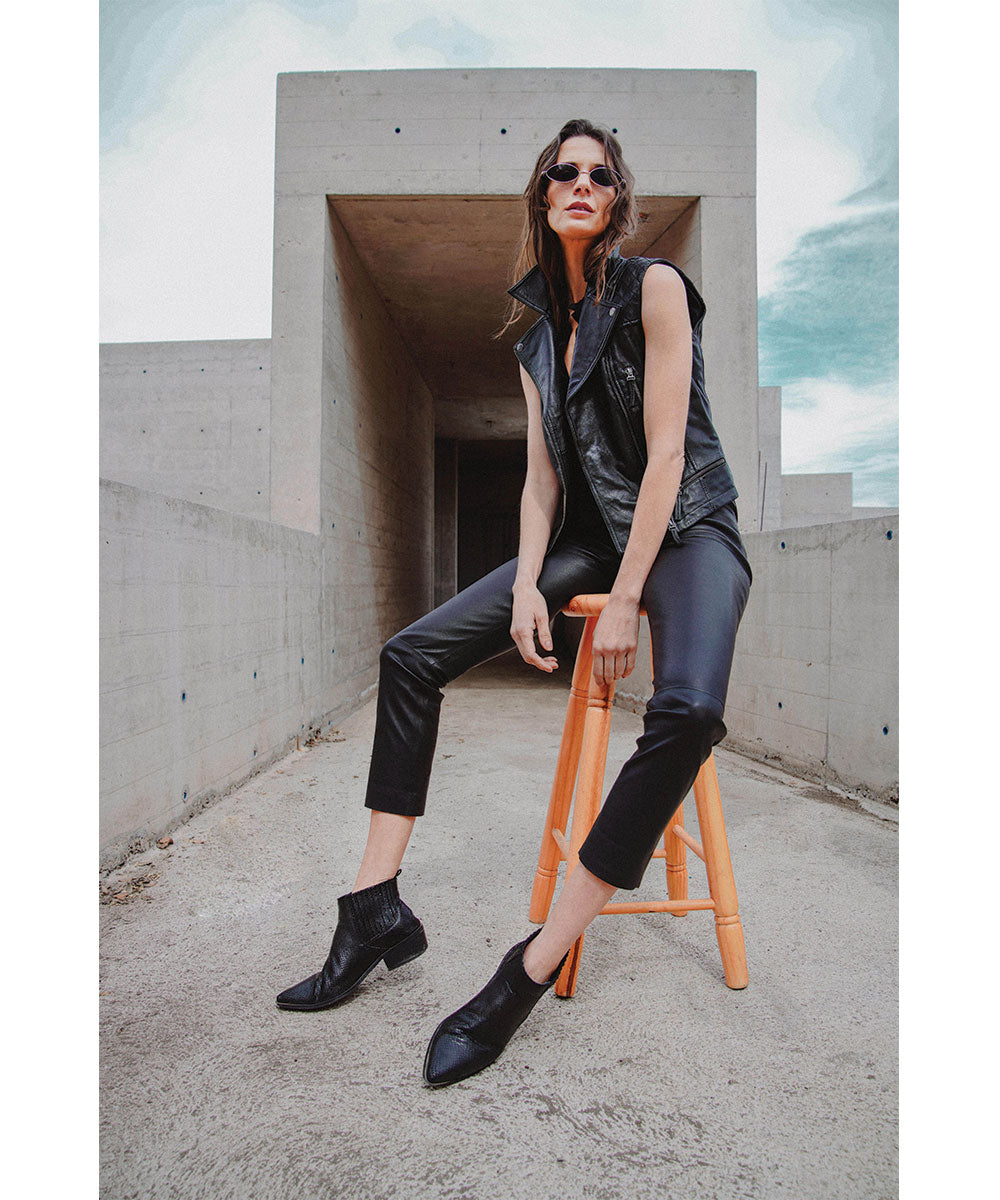 Un pantalón de cuero puede ser perfecto, por eso te presentamos a JOE, corte de jeans, desde la rodilla es recto hacia abajo, hecho 100% en cuero de oveja con refuerzo elasticado por dentro para que no se deforme y se vea increíble.